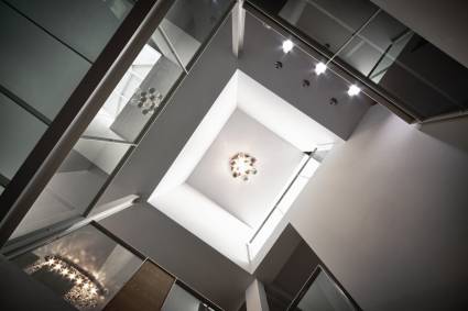 Первым крупным решение было удалить все существующие избыточные элементы для создания объемного значения оригинальной конструкции. На фронте, архитекторам удалось спасти чистоту мега коробки с ACM панели фасада, который может похвастаться дизайном на основе отверстий прямоугольных шаблонов, который умножает себя по мере необходимости, освещения и вентиляции в доме. Этот двойной фасад также генерирует тепло и звукоизоляции свойствами, которые делают проект более устойчивым.