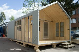 Горный домик из древесины с двускатным образным окном в ожидании прямолинейной программы