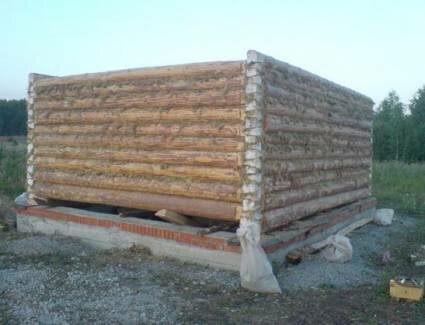 На земельном участке, где будет сооружаться сруб, делаем разметку при помощи колышек и шнура. В любом случае, вы должны получить ровные прямые углы. Также для сруба делается фундамент, правда изготавливается он не из бетона, а из осиновых чурок. В процессе возведения вам придется делать стропилы и столбы. Как и все остальное, они должны быть ровными .