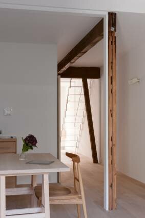 Существующая структура произвольно сместился и вновь вставленные структуры и подкрепления были окрашены белым цветом. Мягко разделив пространство, может быть в состоянии использования любыми открытиями для жизни, студии, и домашнего офиса как расширение с фактором мебелью и картинами, которые могут увеличиться в будущем.