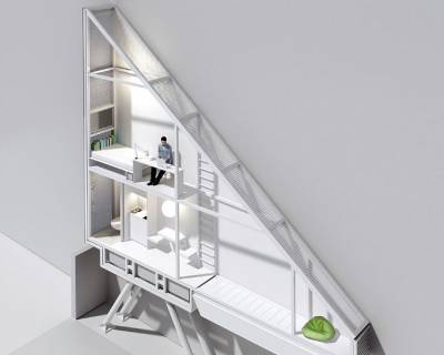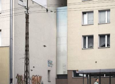 Зажатый в микроскопическом аллее между двумя существующими жилыми зданиями на краю бывшего Варшавского гетто, несколько уровней здания, в доме есть микро-кухня, мини-ванная комната, спальня и крошечная рабочая зона, все доступно через лестницу. Керет говорит, что он планирует жить в доме при посещении Польши.