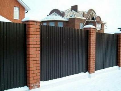 Для любителей скрыться от постороннего взгляда подойдут глухие заборы из шифера, металлического профиля, которые крепятся на металлические стойки или кирпичные столбики. Эти заборы не отличаются особым изяществом и красотой, но и их можно облагородить зелеными вьющимися насаждениями.