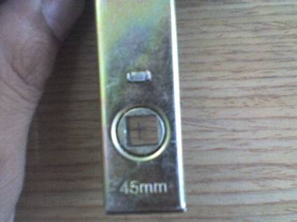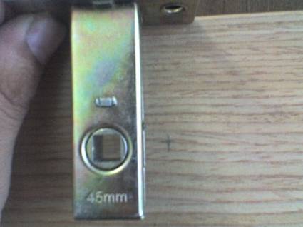 Ручка имеет выступающую часть, которая должна быть свободно погружена в плоскость двери. Поэтому выбираем сверло таким образом чтобы его диаметр не превышал 30 мм. и в тоже время был больше диаметра выступающей части. Размечаем на двери расстояние от края защелки до центра прямоугольного отверстия под четырехгранник.
