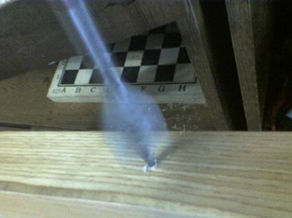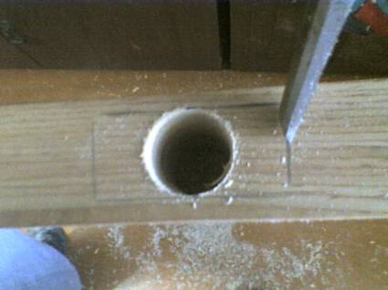 На сверле удобно сделать метку, указывающую необходимую глубину сверления, например фломастером или в виде намотанного на него куска изоленты, лейкопластыря. Сверлите отверстие не отклоняясь от оси параллельно полотну двери. Для контроля удобно зажать дверное полотно между ног и смотреть сверху соблюдая вертикаль. Для их извлечения опилок, в процессе работы придется переворачивать дверь.