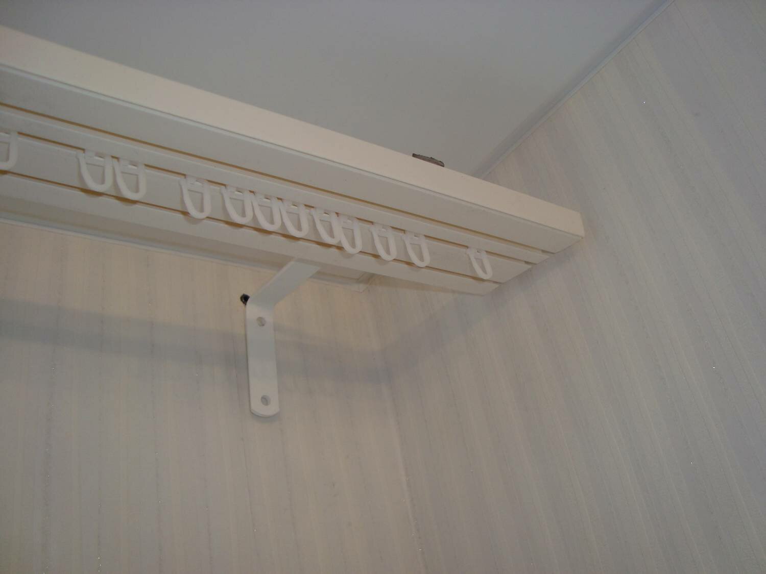 После этого стеновые крепления прикручиваются соморезами с широкой шляпкой к карнизу. Это необходимо делать аккуратно, чтобы не повредить пластиковые направляющие внутри карниза.