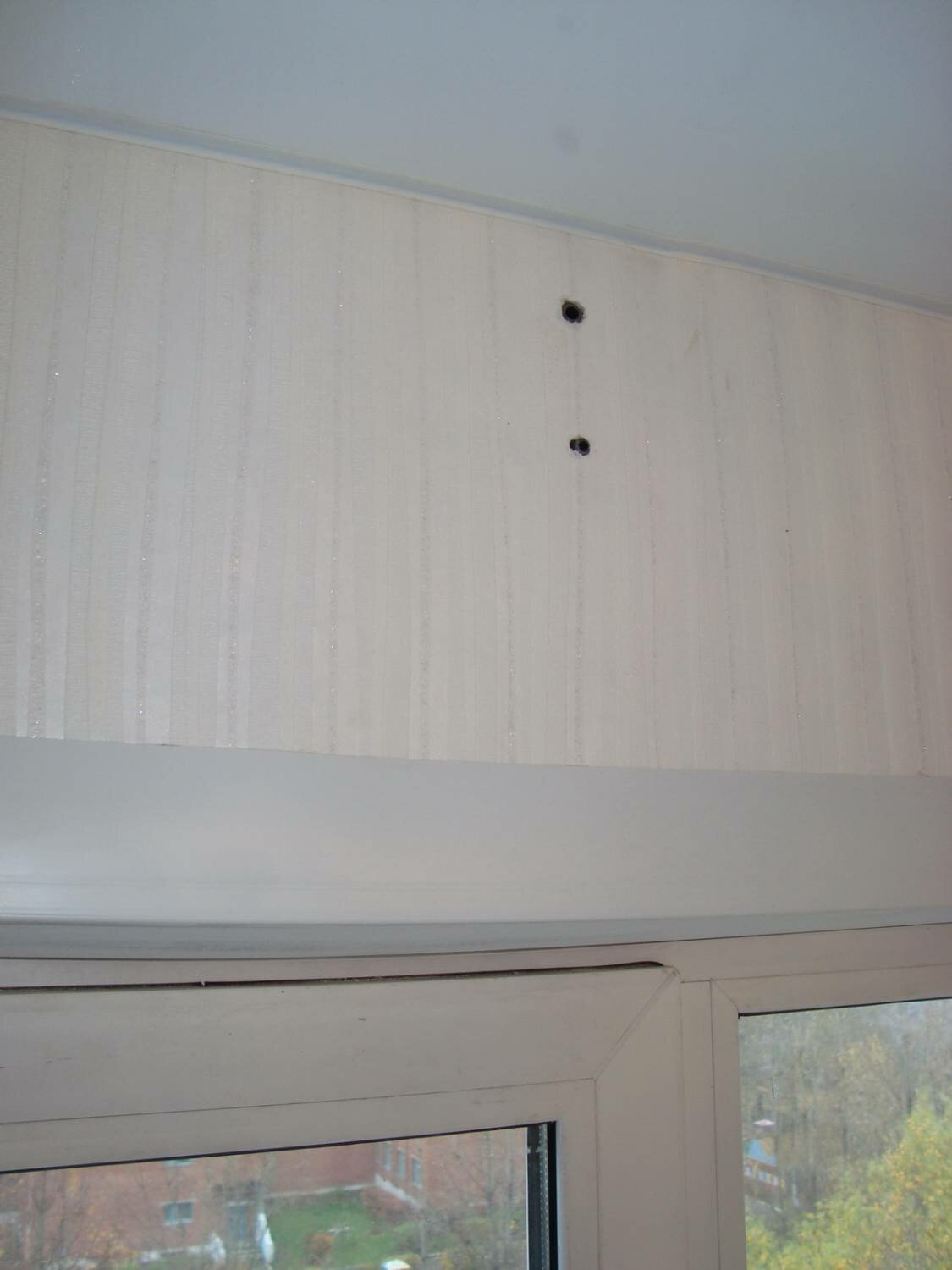 В зависимости от длины карниза необходимо выбрать количество стеновых креплений, которые в дальнейшем обеспечат надежную фиксацию. Для карниза более 3 метров понадобится 4 стеновых крепления. Стену над окном стоит разметить, отложив равные отрезки при помощи рулетки. В этих местах необходимо сверлом по бетону сделать отверстия.