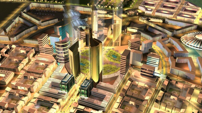 Сеть дорог веером в радиальном направлении от центра условного круга, с центрального делового района (в комплекте с районной больницей), расположенной в центре развития. Около 35.000 домов будут разбросаны по городу, в то время как научный парк и два технопарка будут созданы на севере и на юге. Там будет ряд зеленых насаждений, в том числе коридоров вдоль охраняемых сезонных рек. Школы, университеты, гостиницы, мечети и церкви также планируется.