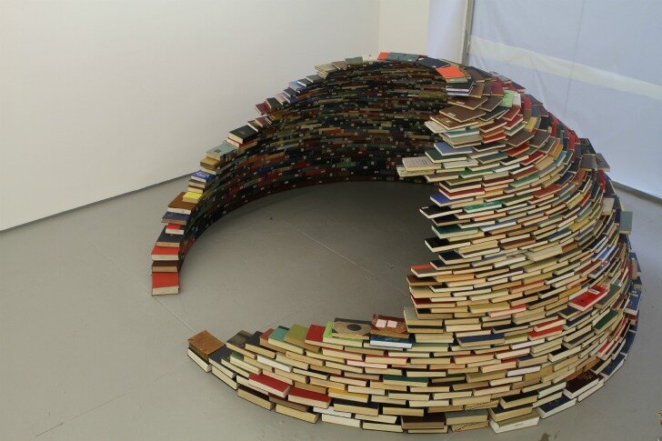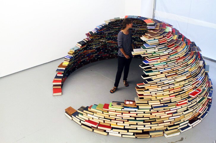 Художник Лагос Миллер недавно представила невероятный проект из сотни книг! Колумбийский художник расположил книги в аккуратный купол для изучения динамики между природой, культурой и материальных ценностей.
