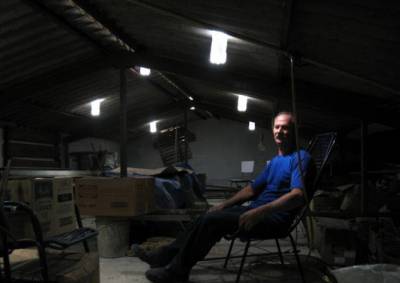 Г-н Мозер сверлит дыры в черепичной крышей, а затем толкает бутыль снизу, держит бутылку водонепроницаемая полиэфирная смола. В зависимости от силы солнечного света, свет заполненной своего дома является эквивалентом от 40 до 60 ватт.