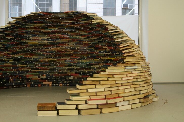 Художник Лагос Миллер недавно представила невероятный проект из сотни книг! Колумбийский художник расположил книги в аккуратный купол для изучения динамики между природой, культурой и материальных ценностей.