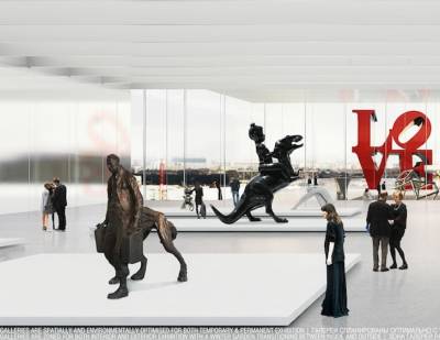 ГЦСИ — звено, вертикальная ось, объединяющая парк, ТЦ «Авиапарк» и музей. Универсальные пространства различного размера и высоты подходят для проведения разных выставок. Архитектор обеспечивает инфраструктуру, кураторы и художники создают музей. В дань уважения к истории участка в качестве аэродрома, ирландская архитектурная фирма разработала широкие бульвары, напоминающие взлетно-посадочные полосы.
