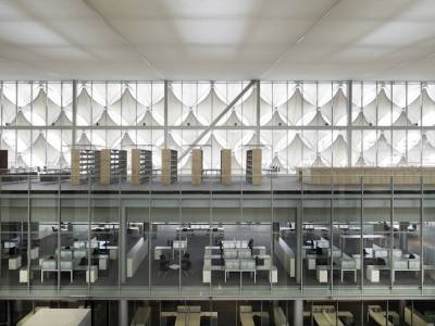 Первоначально построенный в 1980-х, здание старой библиотеки состоит из крестообразной рамы, построенного из железобетона . Чтобы расширить библиотеку, Архитектор Гербер Architekten создали кубовидной структуру, чтобы окружить и сохранить существующее здание. Купол и крыша старого здания также были заменены серией стальных и стеклянных фонарей, которые затопляют читальные залы светом.