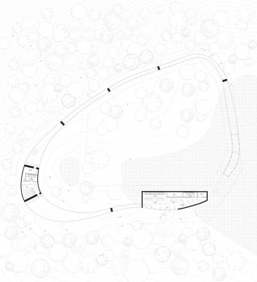 Поднимая структуру от земли, архитекторы стремятся минимизировать его влияние на окружающий лес. Архитекторы сотрудничали с инфраструктурой и инженерной фирмы ABT на проектировании победившей заявки.