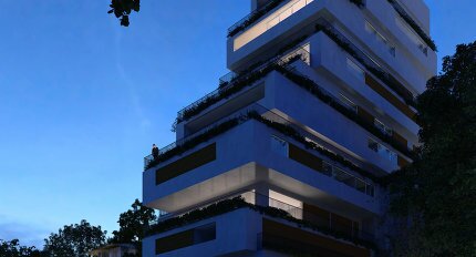 Комплекс представляет собой жилое здание, этажи в котором расположены каскадом. Архитектором проекта выступил Исай Вейнфилд.