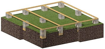 Теперь надо приступать к устройству пола. Для этого сначала изготавливается опорная рама из брусьев сечением 40x40 мм, соединенных между собой в углах на «ус». По готовности опорной рамы на ее наружных углах делаются выемки и рама укладывается углами на бетонные столбики. Установленная таким образом опорная рама будет находиться на высоте 15—20 см над уровнем земли. Выемки рамы, упираясь в опорные столбы, надежно зафиксируют раму в этом положении. Зазоры, которые остаются между выемками и опорными столбами, заполнить цементным раствором. Теперь на раму укладываются лаги с интервалом 35—40 см. На лаги укладывается гидроизоляция — сначала листы рубероида с обязательным нахлестом в 5—7 см, а на них полиэтиленовая пленка — тоже с нахлестом. Теперь на лаги можно прибивать доски (лучше всего шпунтованные).