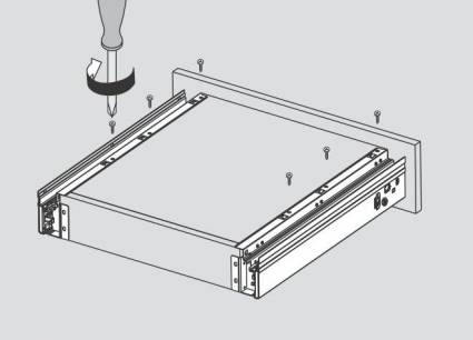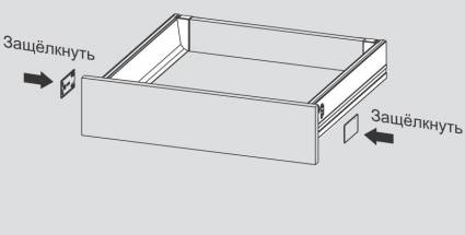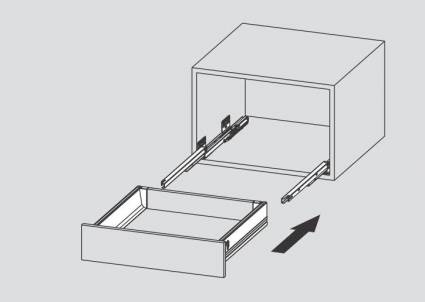 7. Выдвиньте подвижные элементы направляющих, вставьте ящик и задвиньте до щелчка