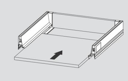 3. Вставьте дно ящика в пазы левой и правой боковых стенок до упора с задней стенкой