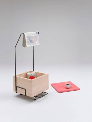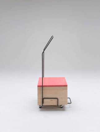 Одной из частей является Таблица / лоток, тележка / контейнер и книжная полка / вешалка для одежды. Все три части изготовлены из железных прутьев и ольхи, которые должны сделать их прочными, но достаточно легкими, чтобы легко двигать.