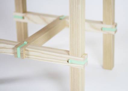 Мебель сделана без винтов или клея. Система собирается вручную через соединение с помощью небольших ярких разъемов металла. Этот факт позволяет пользователю легко перемещаться с сиденьем из одного места в другое, подчеркивая динамизм как неотъемлемые цели объекта.
