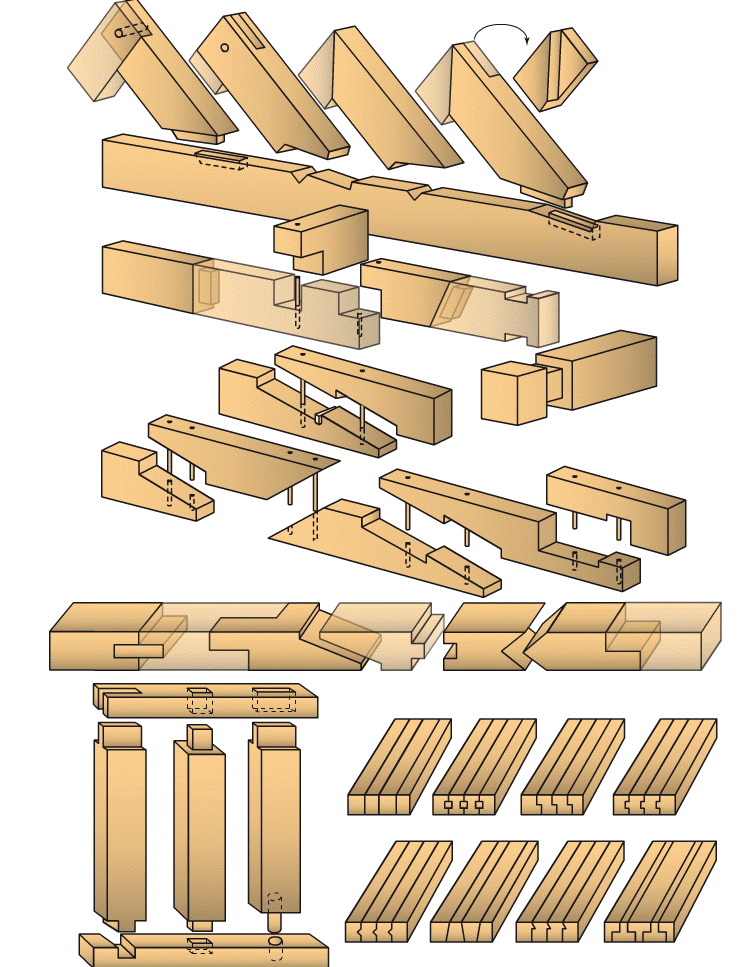 Существует, примерно, 40-50 различных типов соединений деревянных элементов (рис. 1), которые по характеру работы разделяются на две группы: