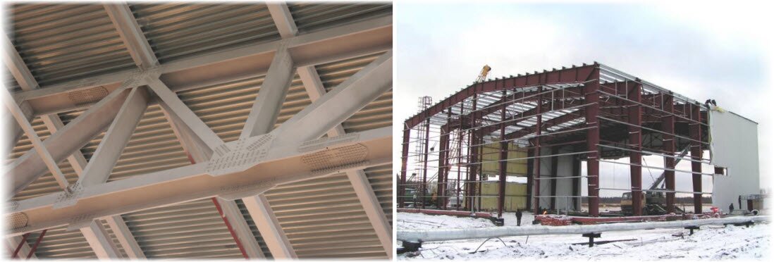 Преимущества конструкций из металла перед остальными конструкциями очевидно, к примеру, железобетонные гораздо больше весят, их намного сложнее монтировать и транспортировать. Производство металлоконструкций не очень сложное, их изготавливают серийно, но к готовым изделиям предъявляются жесткие требования надежности. Монтаж конструкций простой и выполняется крупными блоками. Это позволяет строить так называемые быстровозводимые здания, которые обладают высокой надежностью и долговечностью, а также легко демонтируются. Стоимость такого здания гораздо ниже других подобных сооружений, потому что купить металлоконструкции можно намного дешевле, чем другие материалы. Кроме этого, во время постройки здания можно значительно сэкономить на транспортировке блоков и выиграть во времени: средний по площади павильон можно возвести всего за два месяца.