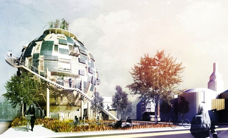 PinkCloud.DK планирует превратить НПЗ в гигантские энергии положительного сообщества. Когда на планете попадает пик добычи нефти , и нет больше необходимости в использовании 49 000 бункеров, которые используются для хранения запасов, эти сферические структуры могли бы стать идеальными домами на солнечных батареях. Их форма оптимизирует захват солнечных лучей, и они также герметичны, водонепроницаемы, и структурно пуленепробиваемы