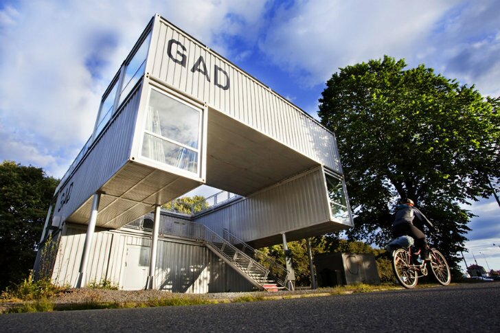 Десять контейнеров составляют эту захватывающую новую мобильную галерею спроектированной и построенной норвежской архитектурной фирмой ММЗ. Структура GAD была задумана как полу-временная картинная галерея, которую можно легко разобрать, переместить и вновь собрать. Первоначально размещенная в Осло, Норвегия, является прочным зданием, которое обеспечивает много место для художественных выставок и мероприятий на открытом воздухе.