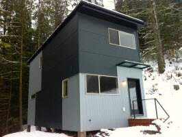 Фасад дома обшит панелями моренного красного Кедра, этот дом является как минималистским, так и современником.