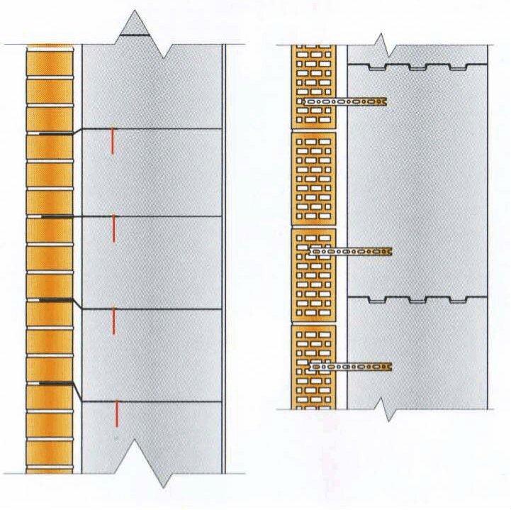 Наименее затратным, является вариант крепления с помощью кладочной стеклопластиковой сетки. Укладывается она через два ряда пеноблоков на третий, перевязывая их тем самым с кирпичной облицовкой