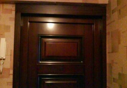 Теплоизоляцию повышает и установка ламинированной панели, которая внешне напоминает дерево. Эта процедура довольно простая, так как не требуется предварительно измерять дверное полотно, все работы мастер произведет на месте.